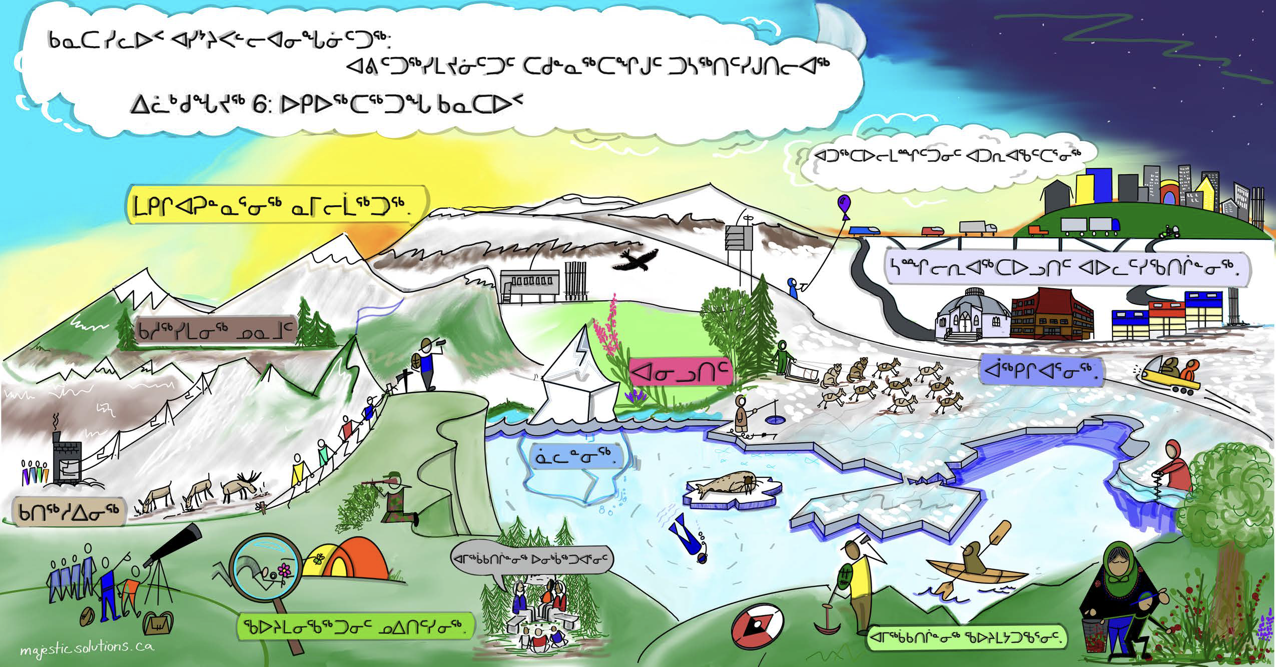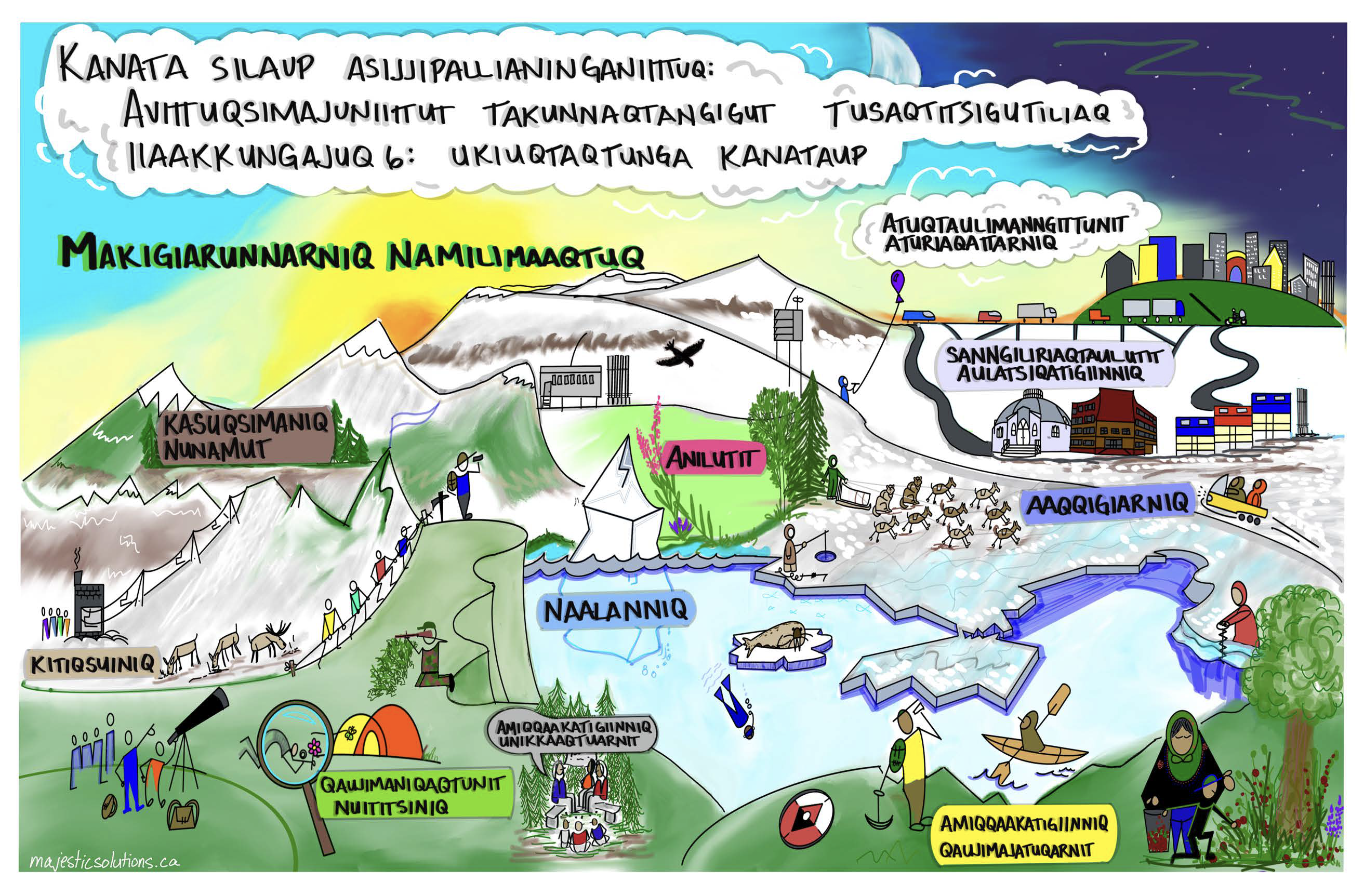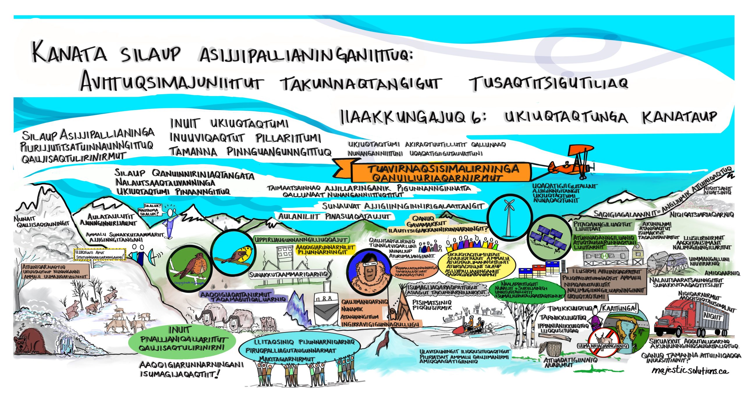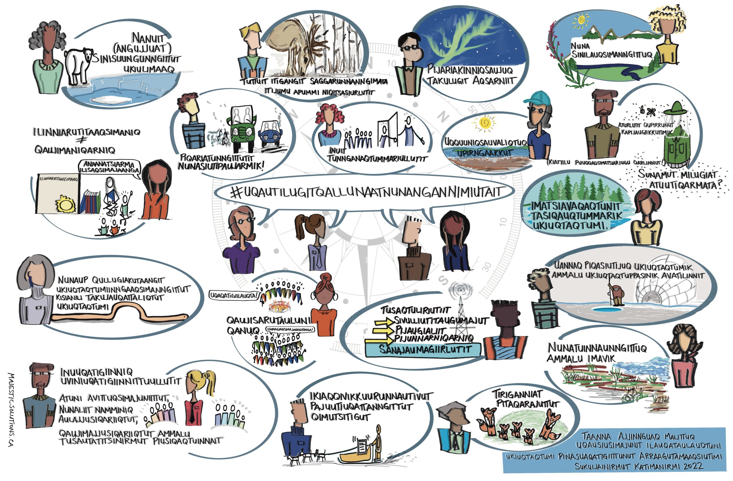 Graphics: These graphics were inspired by the Northern Canada chapter of the Canada in a Changing Climate: Regional Perspectives Report, as well as by discussions that took place about the report at the ArcticNet 2022 conference, and conversations with youth from Nunatsiavut. Developed by Majestic Solutions and Yukon University, this series of graphics for communicating climate change impacts, adaptation and resilience in the North is available in English and in Inuktitut.