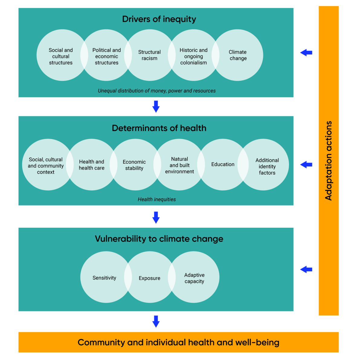Existing social, economic and health inequities are often exacerbated by climate change impacts. Engaging with those most affected by climate change is essential for ensuring that adaptation measures address these inequities.