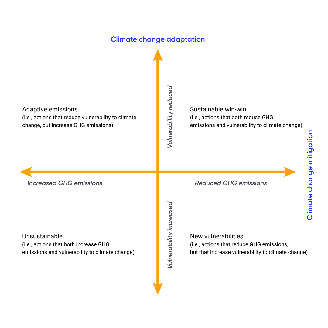 This report focuses on climate change adaptation—actions that reduce the negative impacts of climate change or that take advantage of potential new opportunities. Adaptation builds resilience and reduces risk related to current and future climate change impacts. It involves adjusting plans, policies and actions, and can be reactive (i.e., occurring in response to climate change impacts) or anticipatory (i.e., occurring before impacts of climate change are observed). As a concept, adaptation is straightforward; in practice, however, it can range from being simple to incredibly complex. Our understanding of the ways in which climate change affects vulnerable groups and segments of the population is continuing to develop, highlighting the important socioeconomic and equity dimensions of adaptation decisions. Adaptation also offers the opportunity to generate significant co-benefits, such that investments to address climate change impacts in one particular sector or area can result in benefits elsewhere. Similarly, unintended consequences can result if planning and decisions do not adequately consider the broad system and context in which the decisions are being made.