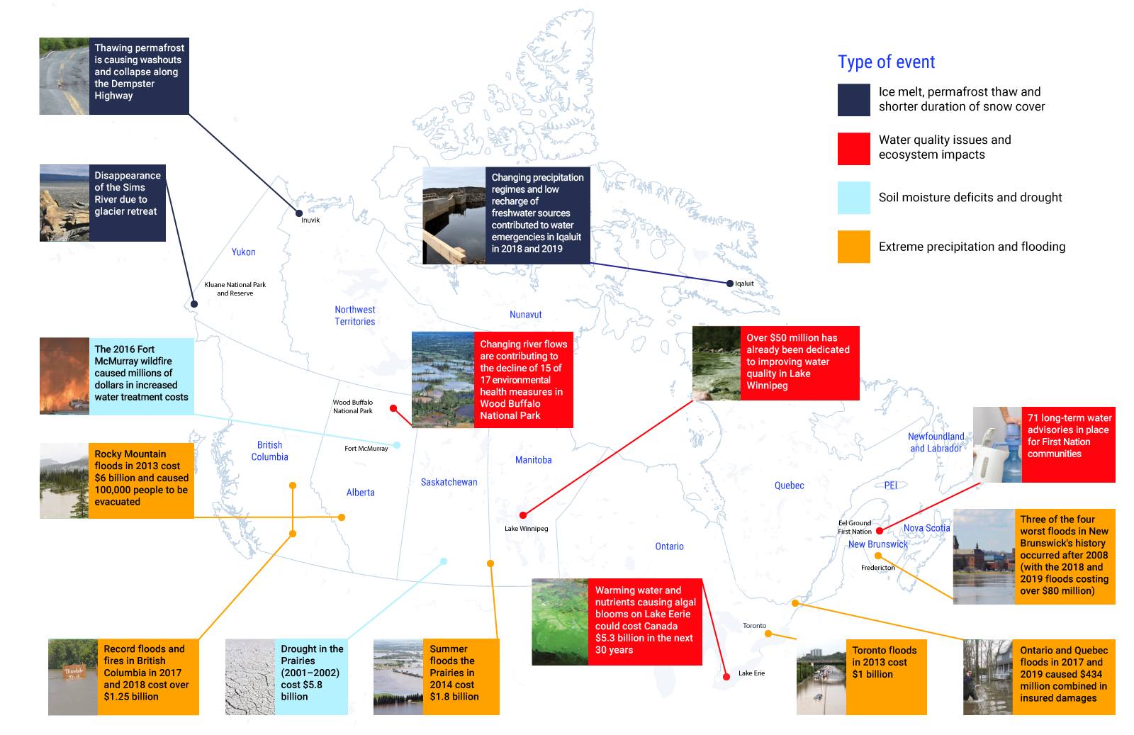 Moudrak, N., Feltmate, B., Venema, H. and Osman, H. (2018). Combating Canada’s Rising Flood Costs: Natural infrastructure is an underutilized option. Prepared for Insurance Bureau of Canada by Intact Centre on Climate Adaptation. University of Waterloo. Retrieved June 2020, from <http://assets.ibc.ca/Documents/Resources/IBC-Natural-Infrastructure-Report-2018.pdf>