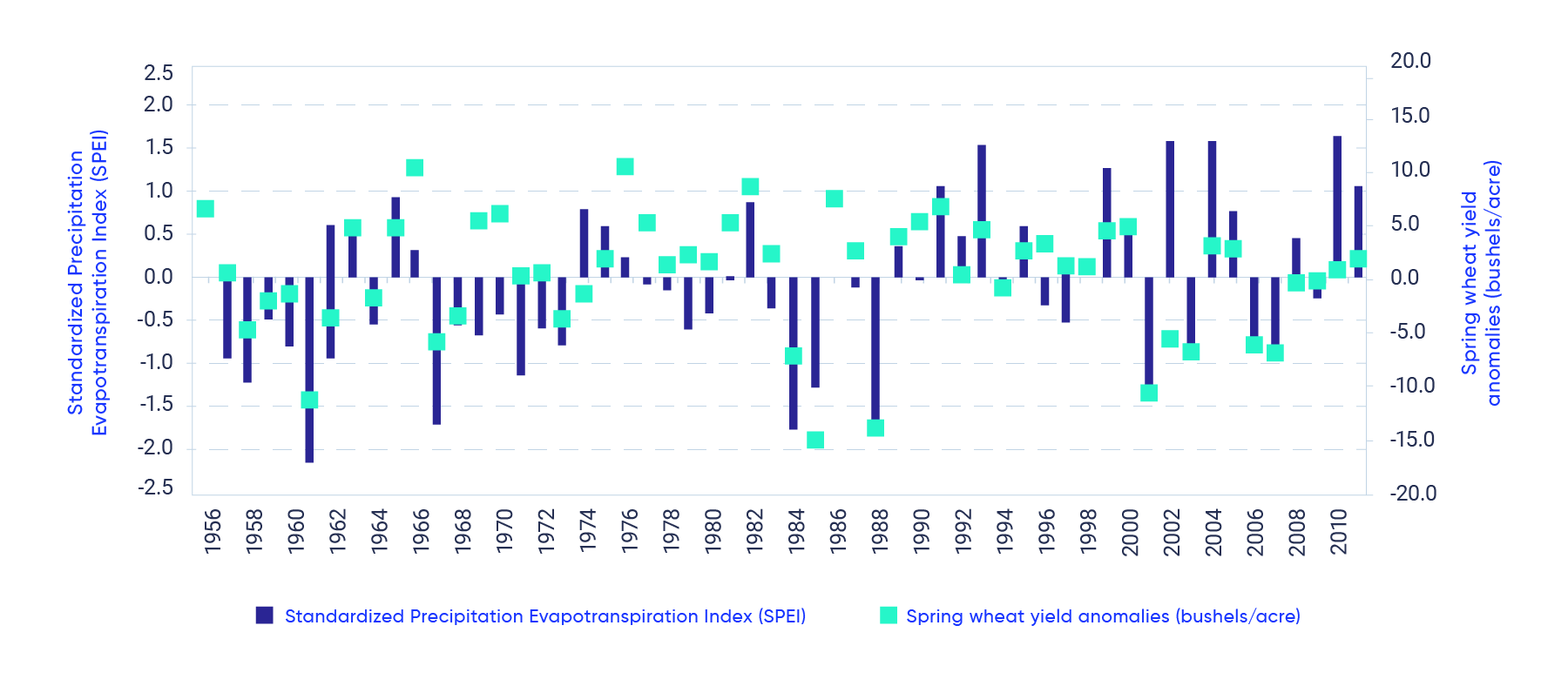 Meng, T., Carew, R., Florkowski, W, and Klepacka, A. (2017). Analyzing temperature and precipitation influences on yield distributions of canola and spring wheat in Saskatchewan. Journal of Applied Meteorology and Climatology 56, 897‒913. Retrieved June 2020, from https://doi.org/10.1175/JAMC-D-16-0258.1
