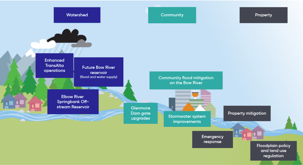 Extreme weather events of amplified severity will likely be the most challenging consequence of climate change in the Prairie Provinces. The impacts of flooding, drought and wildfire in recent years are unprecedented, and climate models suggest an increased risk of these events in the future. Provincial and municipal governments have responded by proposing policies, structures and practices to reduce the impacts of future extreme weather events.