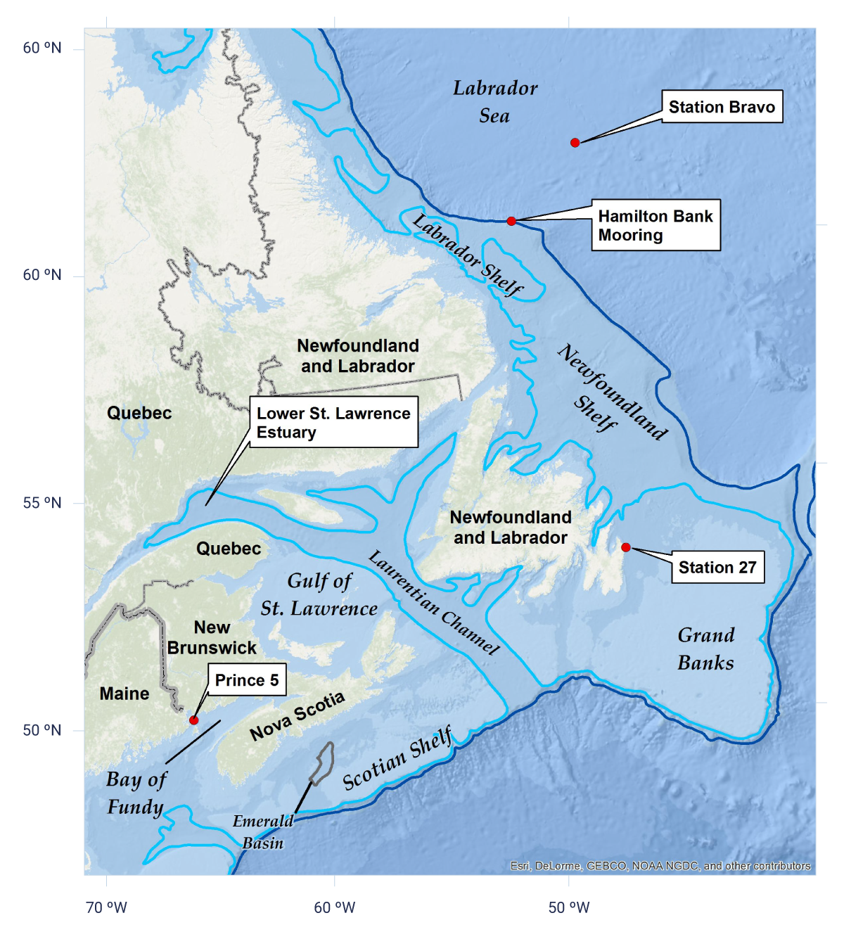 Nutrient supply to the ocean-surface layer has generally decreased in the North Pacific Ocean, consistent with increasing upper-ocean stratification (medium confidence). No consistent pattern of nutrient change has been observed for the Northwest Atlantic Ocean off Canada. There are no long-term nutrient data available for the Canadian Arctic.