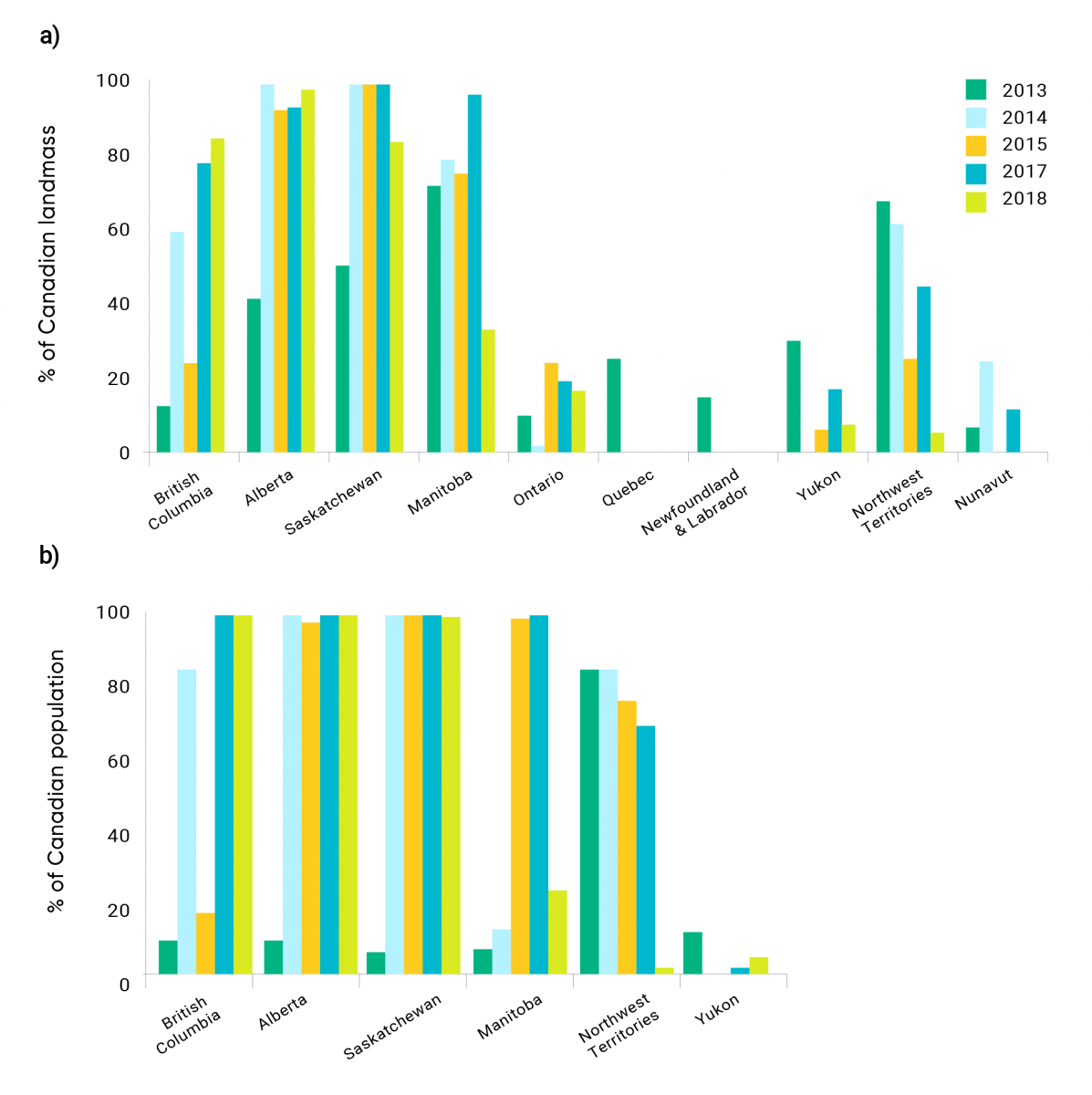 • Canada needs to prepare for a future with more wildfires. Increasing wildfire emissions are one of the most significant climate-related risks to air quality in Canada. Wildfire smoke, which can spread over vast areas of the country, contributed to an estimated 620 to 2700 deaths annually in Canada from 2013 to 2018. The public health burden of wildfire smoke is expected to increase in the future due to climate change.